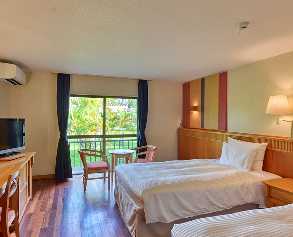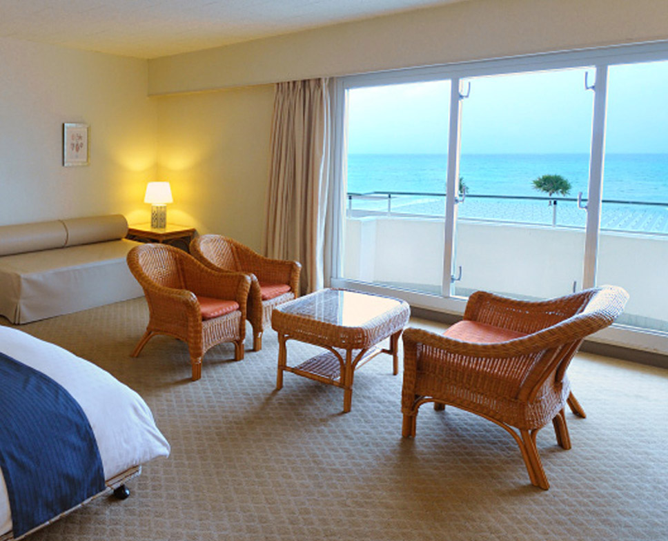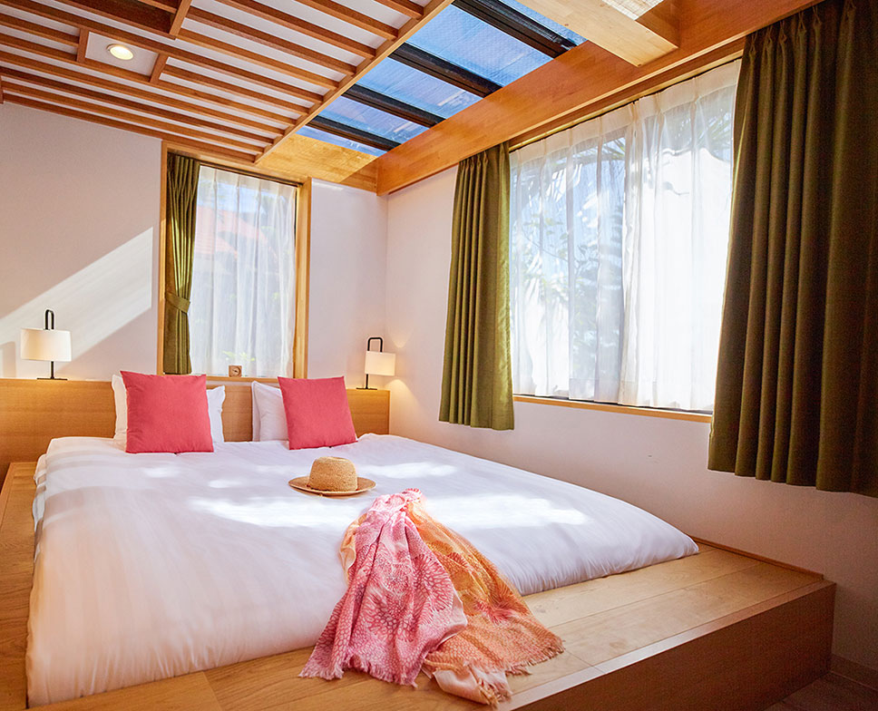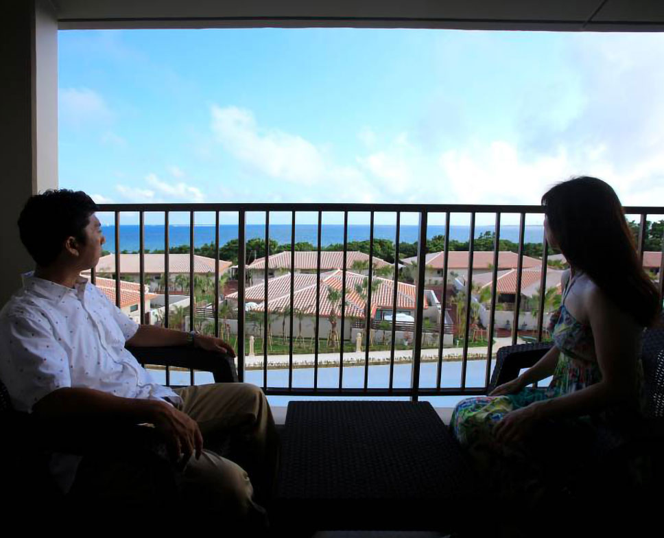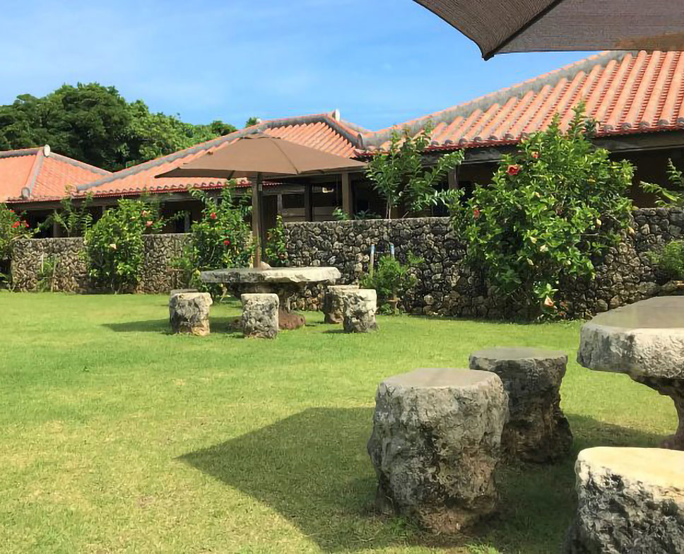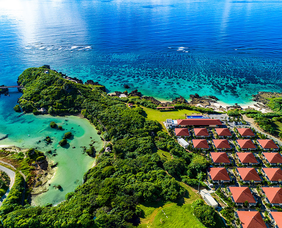 南国の青い海と琉球瓦屋根で統一した造りは古き沖縄の雰囲気を彷彿!木々の隙間から流れる気持ちのよい海風と、透き通るような碧い海のもと、日々の喧騒から離れ心身ともにリラックスしてお過ごし頂けます。