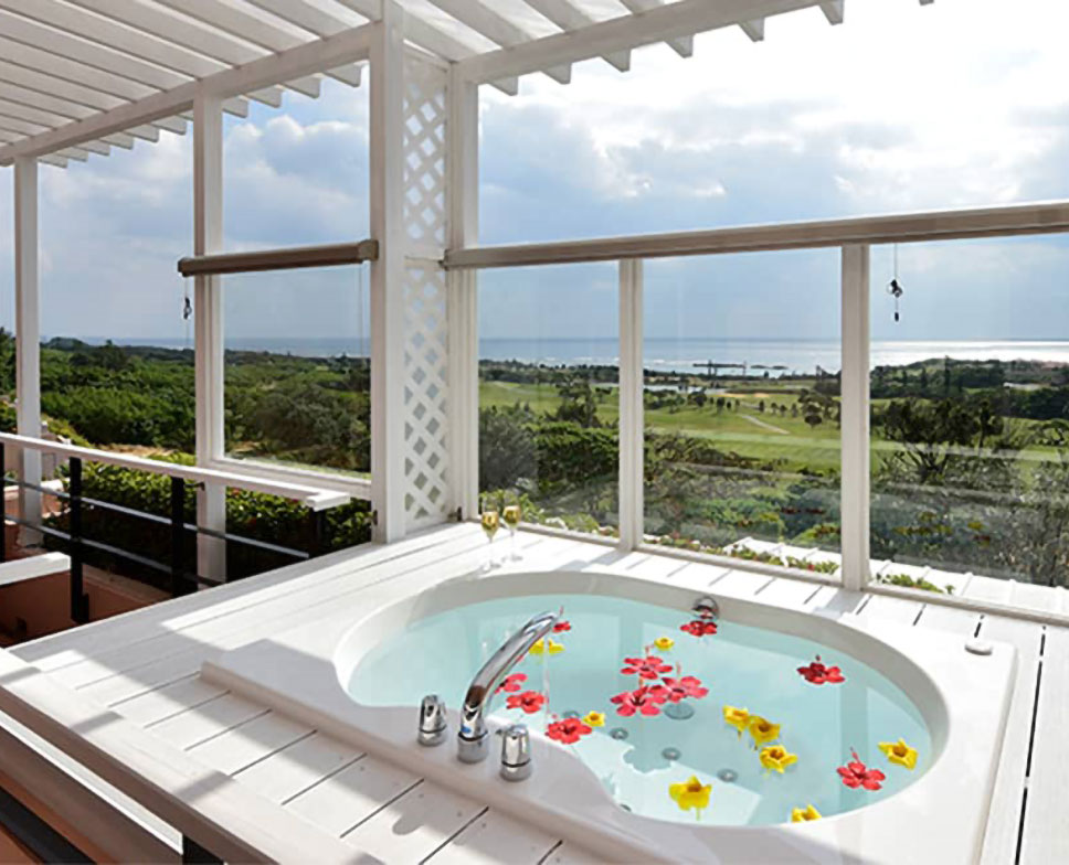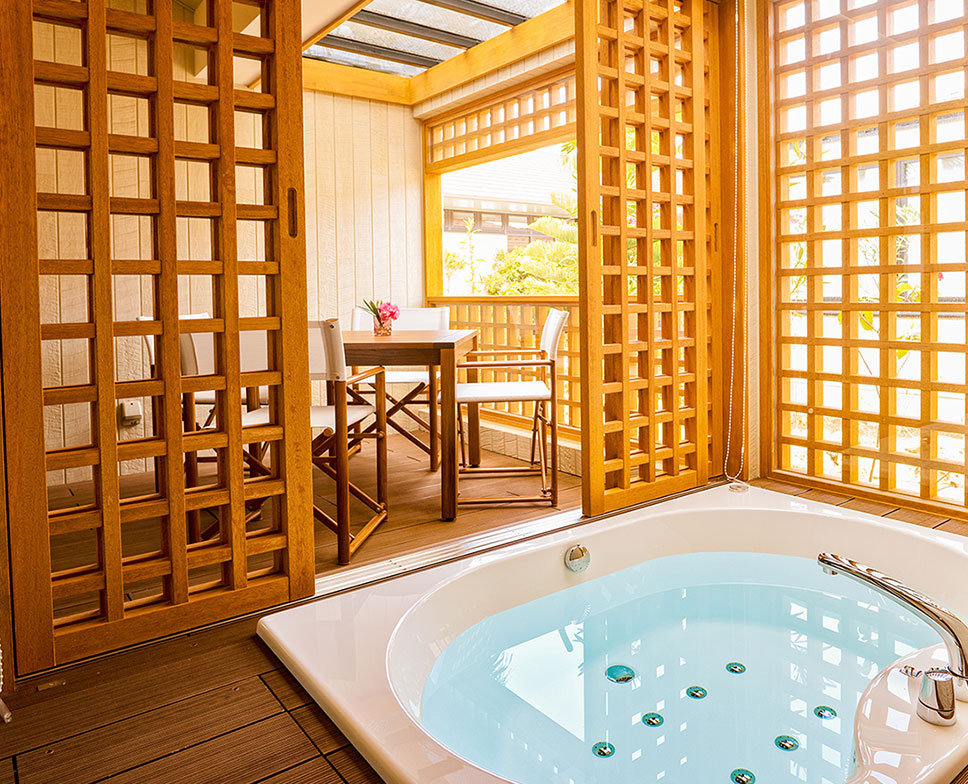 宮古ブルーの海を独占するテラスにプライベートジャグジーを完備
