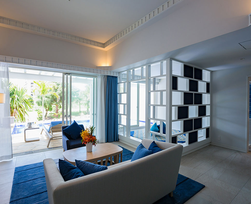 2019年春誕生。空や海の「青」「碧」「藍」は時間と共に移り変わり、二つとして同じ色の無い「幻想的な世界=ミラージュ」を映し出します。テラスにはブルーの水面が眩いプライベートプールが広がり、誰にも邪魔されず思いのままに過ごせます。