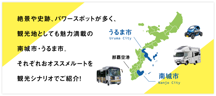まるっとうるま市のいいとこ取りができるおすすめコース!爽快なドライブが楽しめる「海中道路」を渡って、宮城島〜「石川エリア」まで回る満喫コースです。