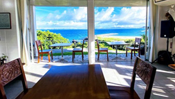 浜比嘉島にある「413はまひが HOTEL&CAFE」で食事をしよう。会計後、レジにあるQRコードを読み込むとアプリ上でコインを獲得できます。