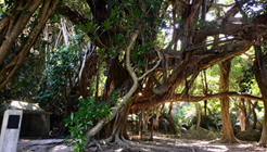 海が時化(しけ)ることを祈る「シヌグ祭り」が行われることから「シヌグ堂」と呼ばれる。琉球三山時代、戦いに敗れた南山の「平良忠臣」とその陣営が海を渡り、ここに身を隠したという謂われがあり、敵陣が海を渡れないように時化を祈ったことから始まる。大きなガジュマルの木に守られた、祈りの場。枝の隙間から射す幻想的な光景に癒される。