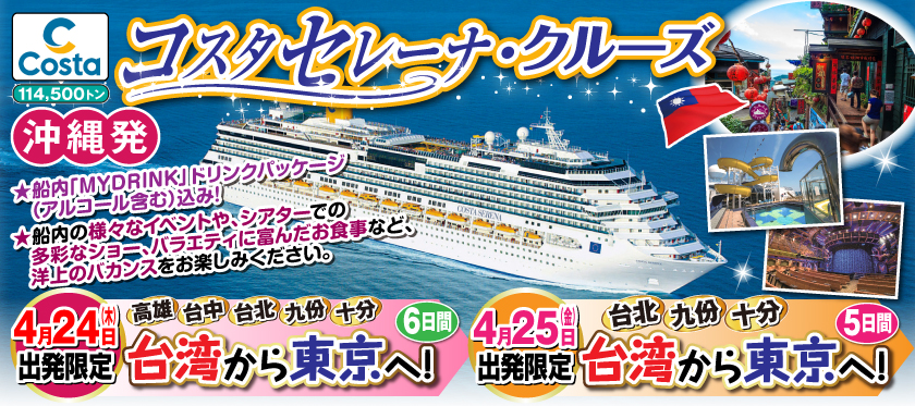 ★『【2026年4月25日出発限定】コスタセレーナで航く!沖縄から宮古島・台湾クルーズ4日間』2025年10月24日(金)ラジオ放送