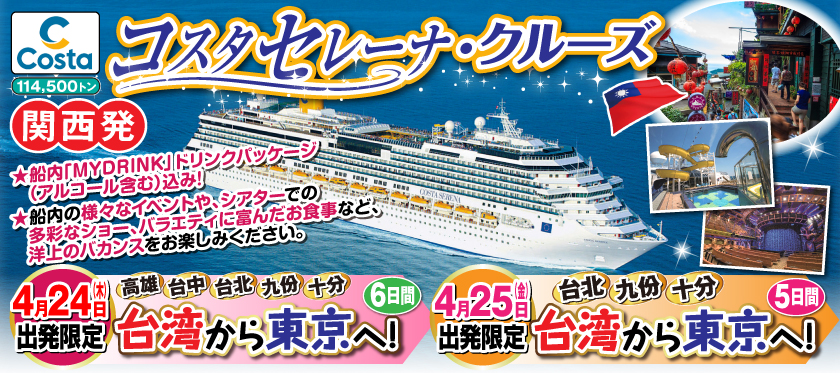 《関空発着》【2026年4月24日出発限定】コスタセレーナ(チャータークルーズ)伊江島・宮古島・台湾5日間
