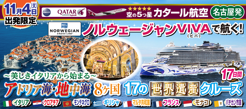 《名古屋発》2026年4月23日出発限定【ノルウェージャン・スターで航く】至高のヨーロッパ7ヶ国大航海クルーズ20日間