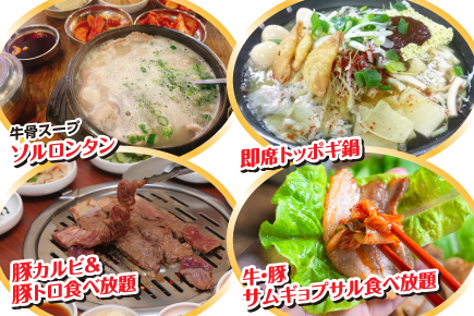 ★甘く香ばしい豚(デジ)カルビの食べ放題&定番韓国料理サムギョプサルの食べ放題を含む計6回のお食事付!!