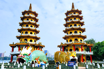 ★高雄屈指のパワースポット!1976年に建てられた龍と虎の姿を持つ七重の塔が目印です。