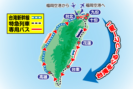 ぐるり台湾周遊の旅4日間 三仙台風景区 六合夜市 ぐるり台湾周遊の旅4日間Map