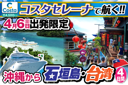【2026年4月25日出発限定】コスタセレーナ(内側キャビン)沖縄から宮古島・台湾クルーズ4日間