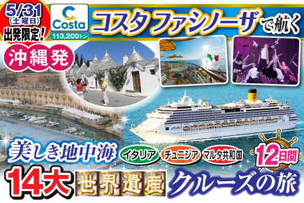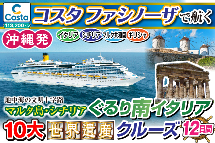 《沖縄発》2026年1月~3月【コスタ・スメラルダで航く】地中海4ヶ国夢紀行クルーズ/永遠の都ローマから始まる11日間