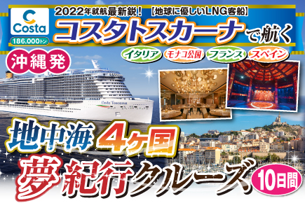 《沖縄発》2026年1月~3月【コスタ・スメラルダで航く】地中海4ヶ国夢紀行クルーズ/美しきミラノから始まる10日間