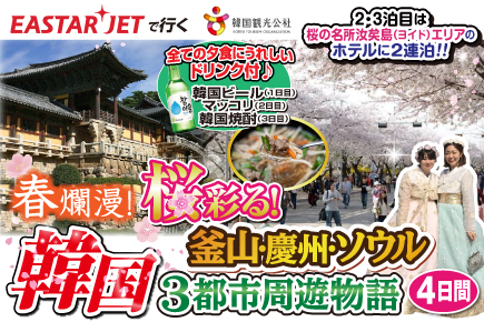 3月~4月 春爛漫 桜彩る韓国 釜山・慶州・ソウル3都市周遊物語4日間