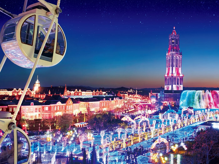 中世ヨーロッパの街並みが広がり、四季の花々が咲き誇る日本最大のテーマパーク。多彩なイベント、イルミネーション、アトラクション、グルメ、ショップなど、一日では遊びつくせないスケール!