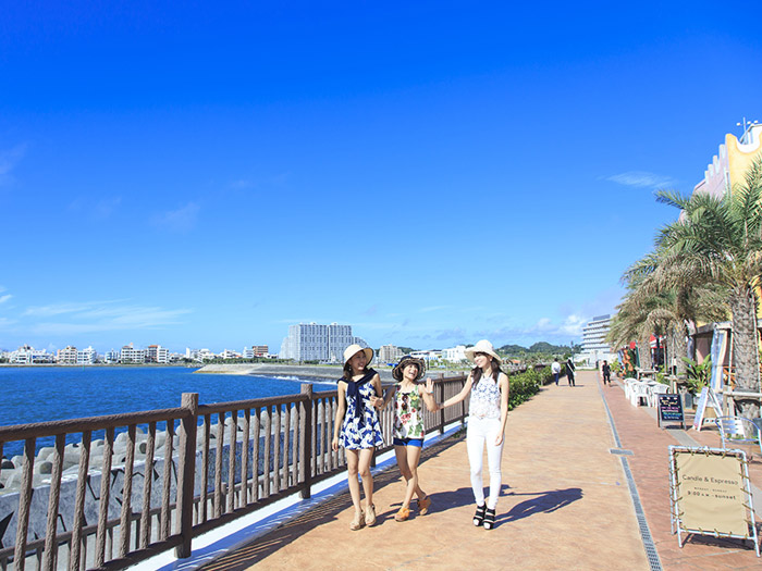 アメリカンな雰囲気あふれるリゾートエリア。フォトスポットとしても人気の「デポアイランド」には海が見えるカフェや雑貨店があつまり、食事もショッピングも観光も全てを楽しめる。夕暮れにはサンセットの絶好の鑑賞エリアとして人気。