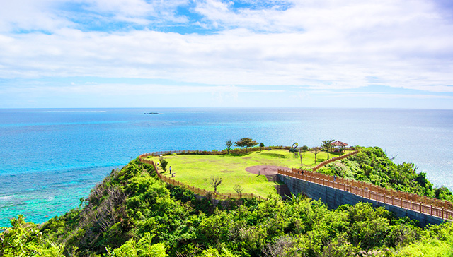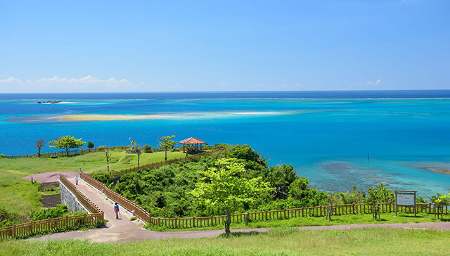 高台に位置する知念岬公園からは、コバルトブルーの海と神の島「久高島」を一望出来ます。知念岬公園隣にあるがんじゅう駅・南城では、地元の特産品がずらり!南城市のゆるキャラ「なんじぃ」グッズも人気です♪
