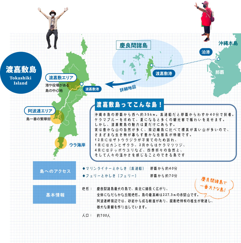 渡嘉敷島は美しいケラマブルーが広がる海と、慶良間諸島の中でも山が多く自然豊かな島。