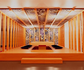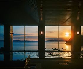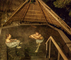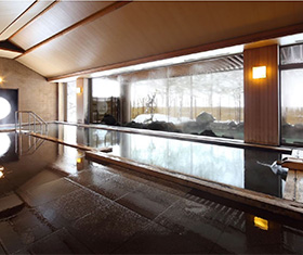 愛真館では「萪内遺跡」をモチーフにした庭園縄文露天風呂をはじめ17種の多彩な湯殿で湯めぐりを!