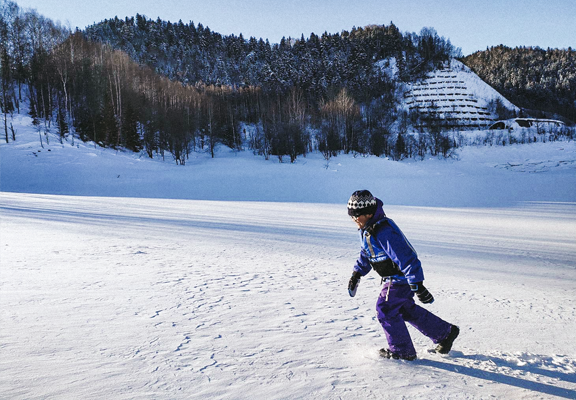 絶景の峡谷美を楽しみながら、氷のメリーゴーランドに乗って楽しんだ後は、冬ならではのウインターアクティビティをお好みに合わせて、思う存分お楽しみいただけます! ダム湖でプレミアムなアクティビティ体験を!