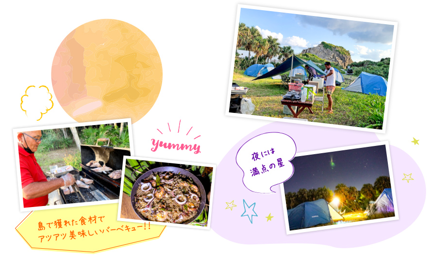 アウトドアを満喫!渡嘉敷島最後の夜は自然を満喫できるテント泊をご用意♪夕食は島で獲れた海産物を使ったBBQをお楽しみください♪