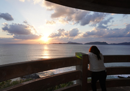 阿波連岬にある展望台。慶良間海峡に沈む極上の夕日を眺めることができる。1日の終わりに訪れたい場所。