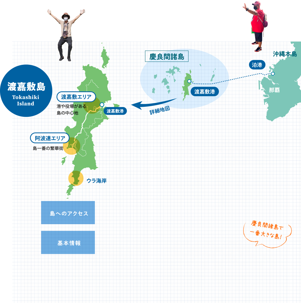 沖縄本島の那覇から西へ約35km。高速船だと那覇からわずか35分で到着。