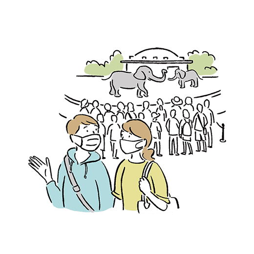 人が混み合う観光地は安心安全に旅を楽しむために感染症対策を徹底してお待ちしております。